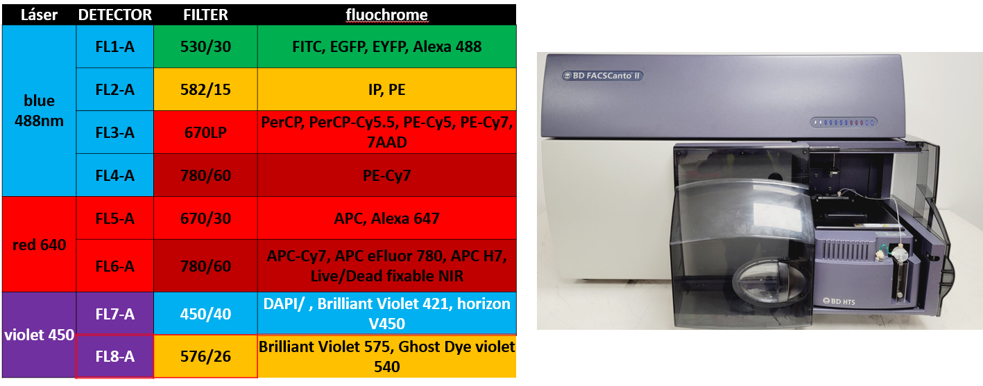 The parameters that can be analyzed by flow cytometry are: i) those related to the physical characteristics of the particle: size and complexity and ii) the different fluorescence associated with the particle.