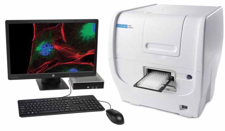 | Cytation (Agilent) Technical Features: The BioTek Cytation 1 multimode cell imager combines fluorescence and high contrast brightfield imaging with conventional multimode detection. This microscope is equipped with a 4X objective, and 3 fluorescence lines: – DAPI (EX 377/50 nm, EM 447/60 nm); LED 365 nm. – GFP (EX 469/35 nm, EM 525/39 nm); LED 465 nm – RFP (EX 531/40 nm, EM 593/40 nm); LED 523 nm Gen5 software simplifies image capture and plate reading. |