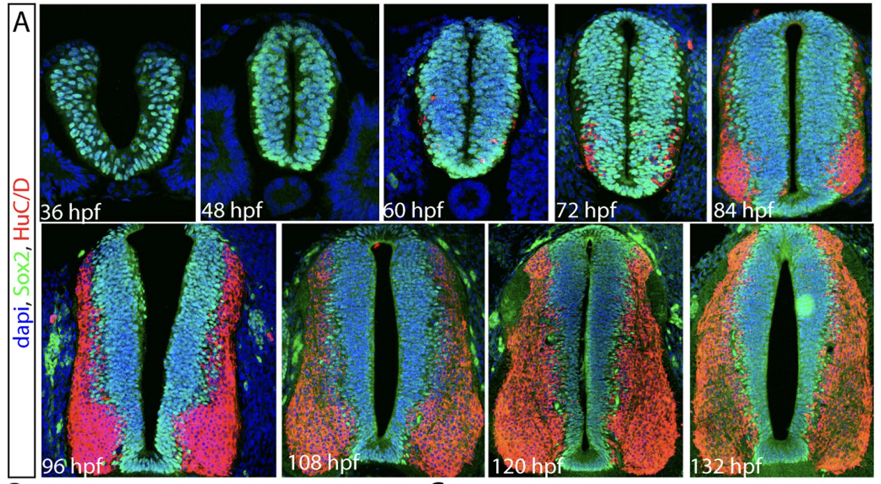 The cellular machinery is governed by interacting proteins, genes and metabolites that form complex and highly interconnected networks of interactions. This way, extracellular stimuli triggers pathways of biological events that regulate gene expression, protein activity, and ultimately, cell response. We combine in vivo and in silico approaches to understand how the wiring of the pathways determines the role of the proteins that regulate the differentiation of neurons. We also study how the interplay between mode and rate of division of stem cells is orchestrated. To do that, we use in toto microscopy combined with theoretical tools and algorithms developed in the lab to quantify the effect of key regulators in the balance between proliferation and differentiation during vertebrate neurogenesis.